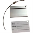 Metal wire with twist action closure to attach tag to luggage or strap.