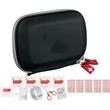 Stay safe with this 16-piece quick fix first aid kit. Set includes four alcohol prep pads, non woven sponge, five adhesive bandages, surgical tape, conforming bandage, triangular bandage, scissors and two safety pins, all packed inside of durable zippered EVA case. Meets FDA requirements.